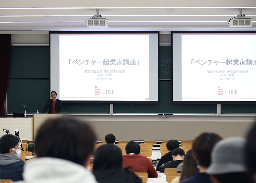 理学部が開講する科目で、理系学生が科学・技術を実社会の課題解決に結びつけるための知識や考え方を身につけるための学修を行います。ベンチャー企業で株式上場を果たしている本学出身の起業家12人を講師として招き、リレー講座を展開。ビジネスモデルへの理解を深めます。