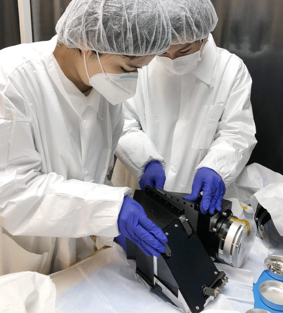 6月の渡米の目的は、望遠鏡のレンズ交換や光学系のチェック。打ち上げはアメリカで行うため、望遠鏡の実物は現地にあるんです。日本ではシミュレーションしかできないので、現地で実物に触れられたのはうれしく、モチベーションが高まりました。ロチェスター工科大学の共同開発メンバーとも、それまでオンラインミーティングは重ねてきましたが、実際に会って協働するなかで、初めてチームワーク意識を実感できたと思います。英語でのコミュニケーションの難しさや意見の違いはあっても「同じ目的に向かって一緒に頑張っているんだ」と。