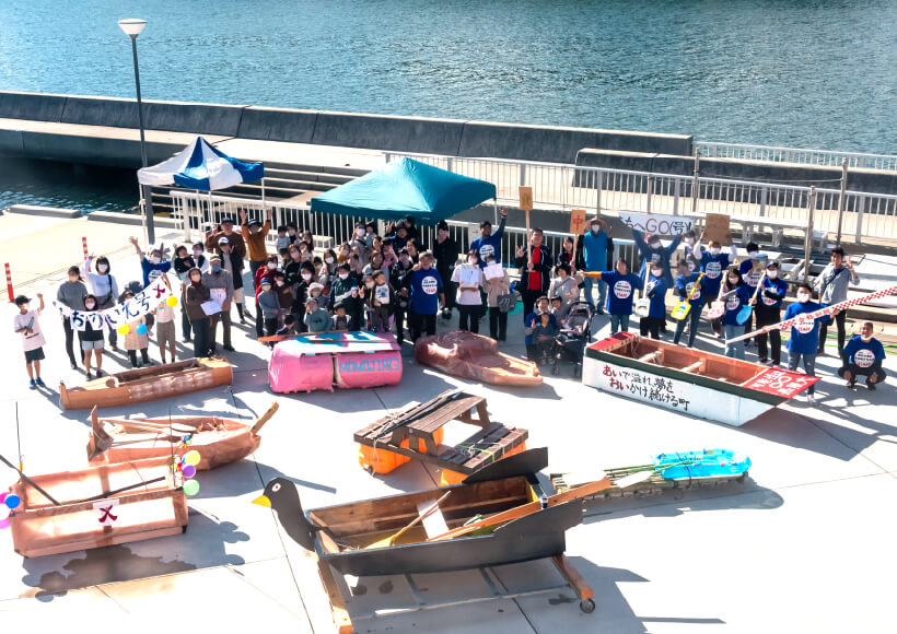 私は兵庫県青少年本部の『ふるさとづくり青年隊』に参加し、兵庫県相生市の地域活性化に向けたさまざまな活動に取り組んでいます。2022年秋には手作りの船でレースを行う『船人間コンテスト』を、相生港で開催。「かつて“造船のまち”として栄えた相生市の歴史を地域創生に生かそう」と、私が発案・企画し、周囲の人たちを巻き込みながら、半年以上前から準備を進めてきたイベントです。ご協力いただいた相生市役所や地元団体との交渉、海上保安庁への許可申請、参加者・観覧者募集などの広報活動など、たいへんなことばかりでしたが、10チームが参加して地元のメディアでも取り上げられるなど予想以上の反響があり、大きな手応えをつかむことができました。